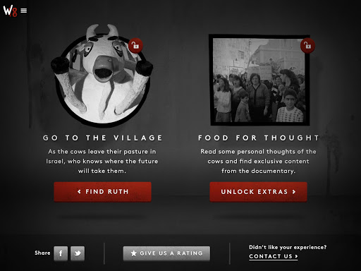 Explore Israel-Palestine through the eyes of cows in The Wanted 18 app. An interactive narrative supplemented by animation, games, and archival material.