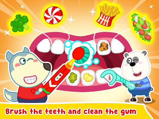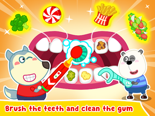 Kid’s dental care, family dental care is very important. Let's show kids how to clean their teeth in the right way, wear braces on their teeth, and take care of their teeth every day as dentist's advice. Come with Wolfoo to visit dentist’s room at Wolfoo kindergarten, where the doctor dentist checks your teeth and takes care of them. This tooth game help Wolfoo and Lucy check their teeth well every day before go to Wolfoo preschool. We all learn about dental care at Wolfoo kindergarten, but in this Wolfoo dentist, dental care game, we meet doctor dentist, defeat bacteria by mouth watering, remove decayed tooth, try tooth extraction, whiten teeth, and clean tongue, mouth, teeth, gum like in a dental adventure. Just in this Wolfoo dental care free dentist game, there are so many mini games to try. Let's download this family dental care game and enjoy with Wolfoo and Lucy.