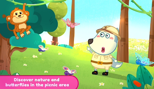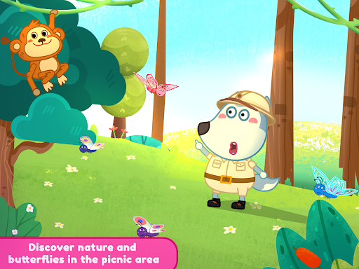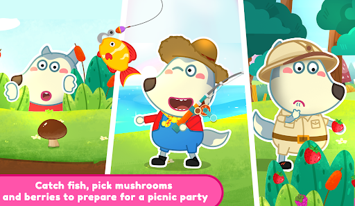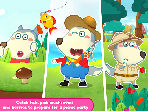 ⛺ As you arrive at the picnic spot, the real fun begins. Play picnic games, collect berries and mushrooms, catch fish for the kitties, and catch butterflies. Take care of every member of the Wolfoo's family. You can even show your culinary skills by cooking delicious food on the BBQ and enjoying a cozy evening by the campfire.