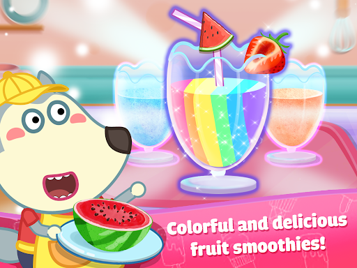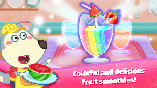 Many kinds of ice cream and dessert at Wolfoo's ice cream parlour for you to play: DIY ice cream, frozen honey, popsicle, frozen dessert, ice cream cup, ice cream cone, icing on the cake, ice cream roll, fruit shaved ice, icing on the dress, perfect coffee, and smoothies.