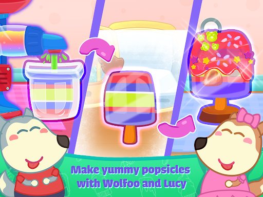 🍡 Lucy is Wolfoo's baby sister, who always excited to make tasty popsicles for their customer at ice cream shop. Lucy will teach you how to make the colorful popsicles to sell at dessert shop. Please watch the tutorial in this ice cream game. This ice cream parlour can be more interesting than ice cream truck game. Because there is a great ice cream maker from a cool ice cream inc: Wolfoo the dessert maker.