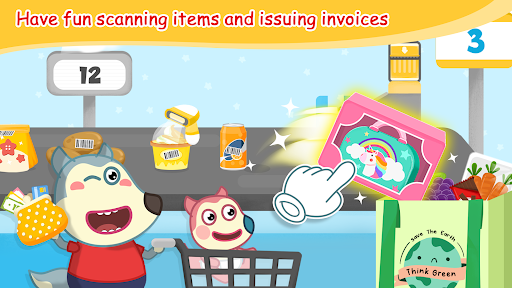 Come to Wolfoo Supermarket, Shopping to enjoy shopping and participate in exciting games in the shopping mall. Children will be responsible for helping Wolfoo shop for items on the shopping list, print labels for cashiers, and fishing. The kids supermarket sells a variety of products that are familiar for kids: fruits, vegetables, fishs, drinks, etc. Baby will be happy to search for products and fill the trolley. Through this game, children will learn the knowledge of color, shape recognition and math, recognizing the food around.