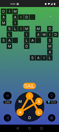 The main goal of this word puzzle is using the given letters, combine them and make them into a word cross. Just slide your finger to connect the letters to combine a correct word!
