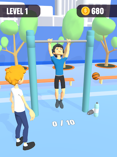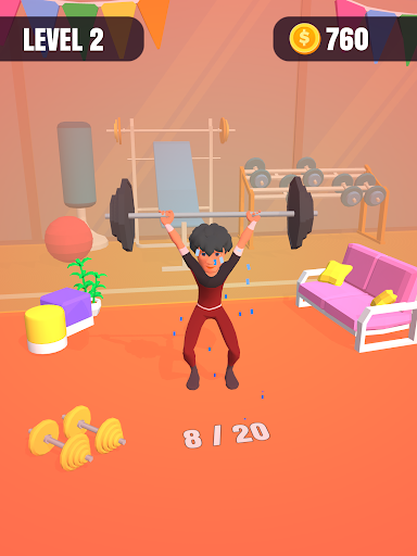 Just hold down the screen and fitness will begin. But as the action is performed, the characters will become more and more tired. If you cannot release it at the right time, you will fail. Control your holding the rhythm and complete the number of target movements.