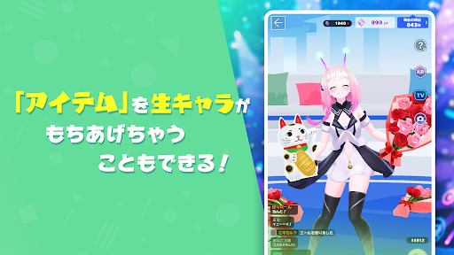 Unlike the conventional one-way communication system of live streaming platforms, "Yougene Live" offers real-time interaction. When you send a gift, the character on stage instantly receives it. You can watch them hold or use the gift, and even read your name and comments, or play a game with all the users. This app offers the finest quality of entertainment by sharing the same time and space.