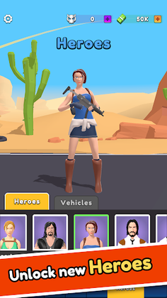 Remember that any upgrades you make during the race will be burned after you lose. But that's okay, shooter! Every defeat is an opportunity to make yourself better, so that the next time you come back to the battlefield you can win. Between battles you have the chance to improve your stats permanently for the money! Moreover, for skull currency you can unlock cards with unique passive and active skills, which you can use with a tap during the fight!