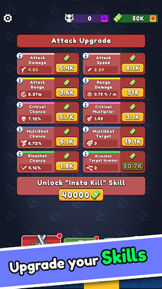 The only reliable way to save your own life and survive is to create a strategy and keep to certain tactics. To be able to stop this rush of angry monsters, you need to improve only those stats that you need, think with your brain!