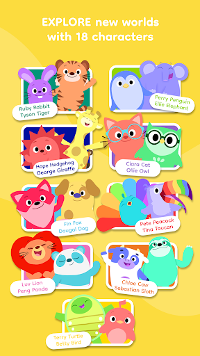 With over 40 interactive activities and games, ignite your child's curiosity and imagination while they embark on adventures with 20 charming characters like Ciara Cat, Ruby Rabbit, and Luv Lion. Each character offers unique learning benefits, from mastering numbers with Fiona Fox to exploring our world with Ellie Elephant.