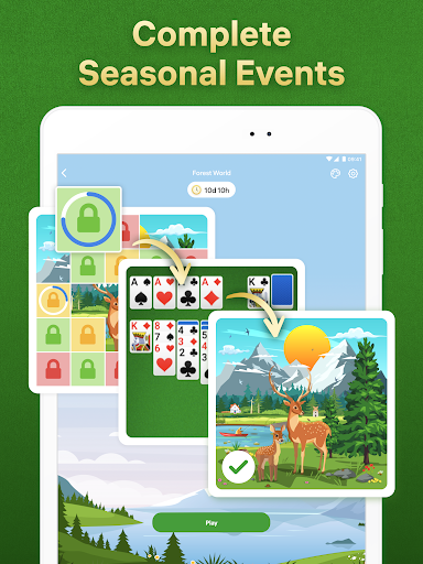 • Explore other solitaire features like Daily Challenges and Seasonal Events to expand your experience with this match cards game! Play Solitaire Match anywhere, anytime on your mobile device.