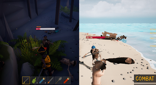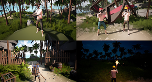 Survive and fight against hostile natives in The Mysterious Island by collecting materials and building shelters.