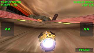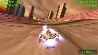 Race through futuristic worlds on anti-gravity machines; fast-paced, easy-to-play game with stunning visuals and sounds.