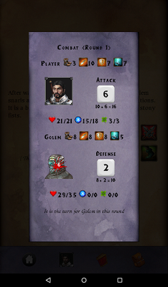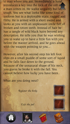 Adventure is a game in the same line as the classic gamebooks in which you choose your way through an absorving storyline, but with much more traditional roleplay elements.
