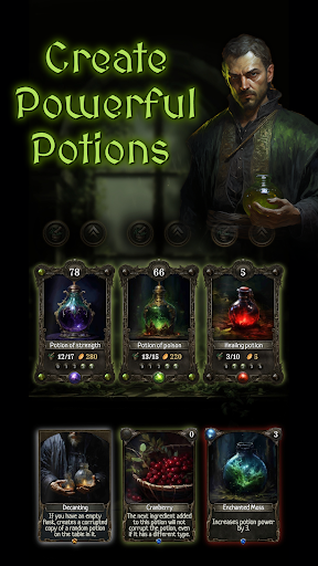 The game combines the mechanics of collectible card games (CCG) and alchemy simulator. Upgrade your laboratory and plan how to use the random ingredient cards in your hand to create the most powerful potion!