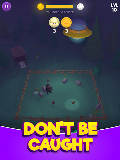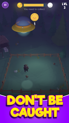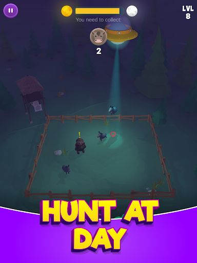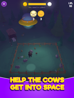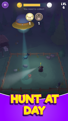 You are the driver of an alien saucer, guided by a light, and your goal is to collect all the cows from Earth and drive them into space. The hunt can develop during the day or at night time, and depending on that, you must deal either with the dark or sunlight which make it challenging to reach the animals.