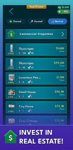 From cryptocurrency to commercial real estate, explore limitless investment opportunities. Start with a small coffee shop and level up to own stadiums, luxury mansions, or skyscrapers. Rent, sublet, or flip properties to grow your assets. Plus, hire tax accountants to optimize your earnings and minimize taxes. Diversify your investment portfolio for exponential financial growth in this engaging life simulation game.