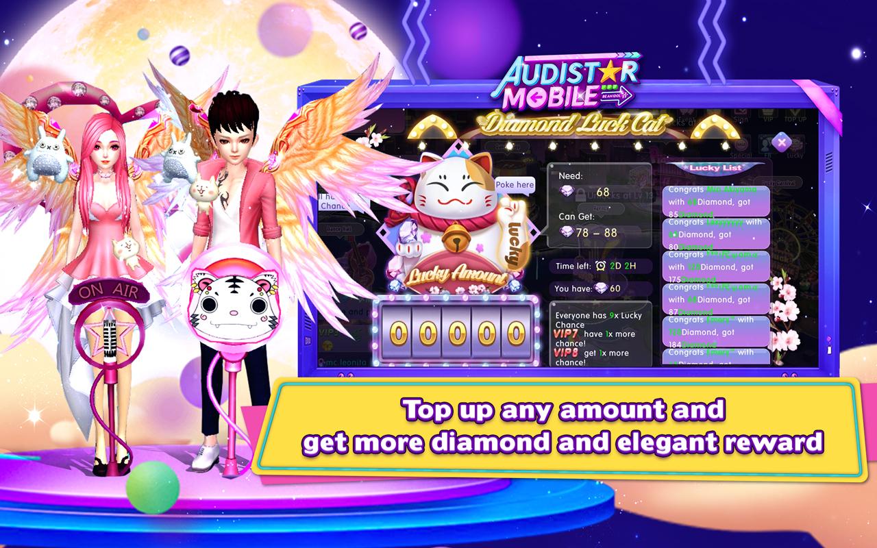 ===== Minimum Device Requirements =====Operating System : Android 4.1 or moreRAM : 2GB or moreStorage : 3GB MinimumDownload Patch / Update Size : 350MB** A stable internet connection is requiredCommunity Base Game, in Audistar Mobile you can find friends and create your own music community.
