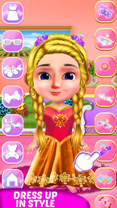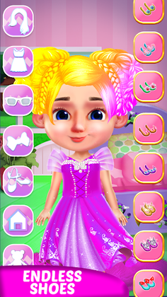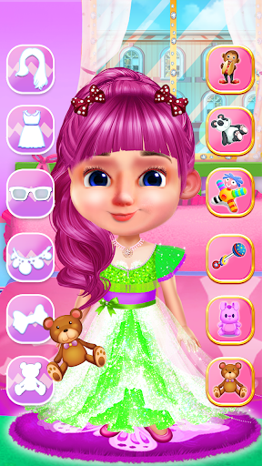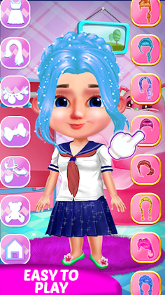You can select a girl or boy in this dress up games “Toddler Girls Dress up games”, it's your choice. Then you will make your baby ready for a party or show etc. You can choose any hairstyle for cute girls and boys. Every hairstyle is available in two colours, you can pick your favourite one in this makeup games. Then you can choose any outfits like a pent shirt, frocks, dresses, upper or costumes. You can make her ready for the party by giving her an adorable princess fashion look or help her to win a contest show by giving her a celebrity look in your makeover salon. Or you can choose animal costumes like bear, crocodile, tiger, panda and penguin etc in this game for kids. You can also select a romper, warm dress for winter or other outfits according to the season for toddlers dressing in mermaid games. Don’t forget to select shoes by matching the dress. Make the little baby happy by giving a toy like stuff toy, car, bunny, ship, doll, lollipop, candy, ice cream etc. Then select a background for the picture. And at last take a photograph of your baby and share it with friends and show them your designer chic skills in girls games.