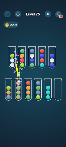 1.Tap any tube to move the top ball lying on it, then tap another tube to merge the same colored ball together.