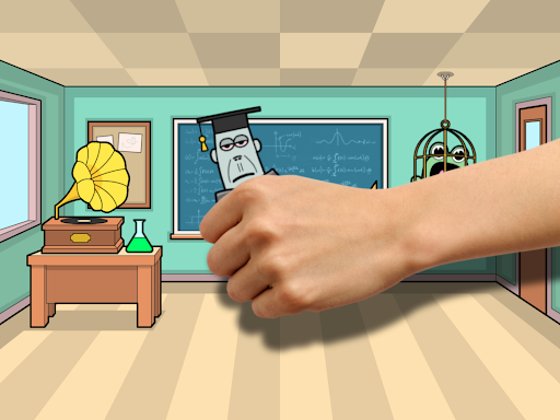Bash the Teacher is easy to play: just tap the teacher, desk or pet!