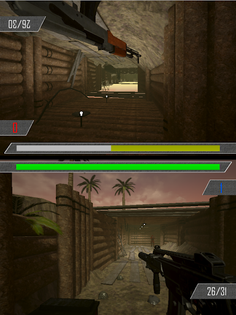 We've redesigned the usual fps touch screen controls providing an intuitive, non-intrusive, buttonless control system which does not rely upon clunky crosshair placement or trying to quickly hit small buttons. This frees up screen space for smaller devices, and allows the stunning Unreal Engine visuals to shine through.