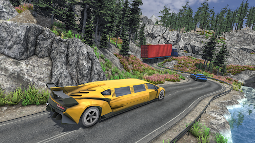 Racing, jumping, passengers carrying limousine simulator has fascinating journey in the hills. Modern