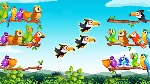 In the bird sorting games, your objective is to help cute colorful birds find their cozy nests. How? By sorting birds based on their colors and shapes. It's like a jigsaw puzzle, but with an adorable bird-matching game. The unique design of the color puzzle will bring you amazing gameplay.