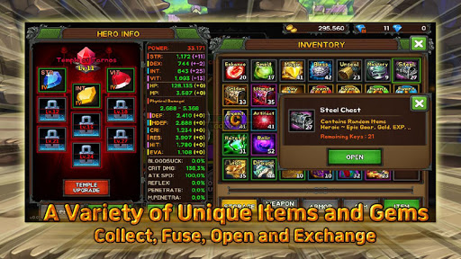 - Familiar to fans of the idle rpg genre game characteristics of heroes and items