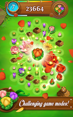 • Collect Flowers Mode: Create a chain reaction of connecting flowers to create a sequence of the same colors