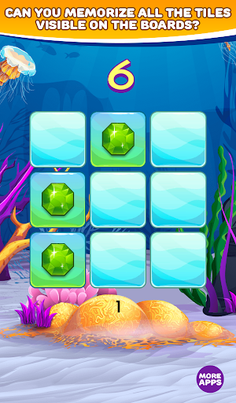 This is one of brain teasers which help you train your short-term memory and visual memory. Can you memorize all the tiles with jewels on 3x3 board? It's simple! So maybe you try do this on 4x4, 5x5 and 6x6 board. Quite difficult, right? Are you ready to take challenge and test your memory?