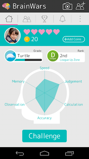 BrainWars is an outstanding mental concentration battle game for players worldwide. Come join in the excitement with simple brain teasers and challenge others for the top spot on the global leaderboard. Brain Teasers can be performed without any special knowledge required, allowing everyone an equal opportunity to develop their mental abilities through consistent practice and repetition.