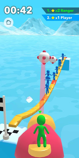 Race to the end of the bridge to become the KING and shoot balls at the other players.