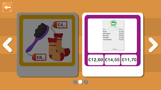 This app was created to follow the six mostly used exercises to help children practicing calculating with money. The children learn to add money, to put it down, see and understand price lists and calculate how much cash must be returned.