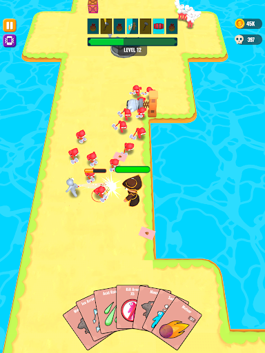 Throw cards to kill your enemies and collect dropped cards when they're dead.
