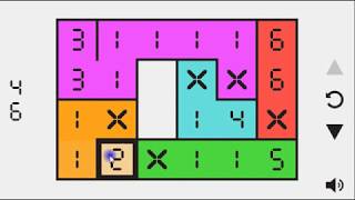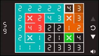 The gameplay concept involves a black and white grid containing numerical digits with a series of colored cells marked with an X. The puzzle requires you to link up numbers that follow a non-decreasing order, starting at the marked cells, until every square on the grid is filled with color.