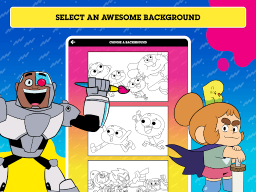 Explore a huge range of colour-in backgrounds and animated stickers featuring your favourite Cartoon Network Characters including: