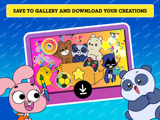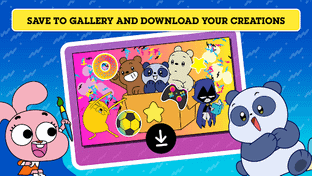 Choose from loads of colour-in backgrounds and explore a wide range of stickers including characters from The Powerpuff Girls, The Amazing World Of Gumball and We Baby Bears! Play with a variety of colouring tools, brushes, and more - then decorate your masterpiece with stickers! Watch your creation come to life as an amazing picture or an awesome animated video. Download your creation and share it with your family and friends!