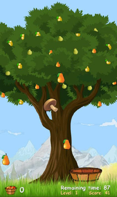 But be careful, because every missed fruit brings you negative points and decrease the number of fruits in basket. Also try to evade other falling objects because they bring negative points too. Beside that, you have a limited time to complete each game stage, and in addition, with each new level the game becomes faster and faster.