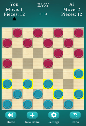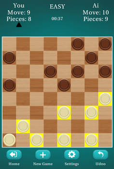 Checkers (draughts, damas in other languages) is a classic challenging board game involving strategy and played by two players or one player vs Ai.