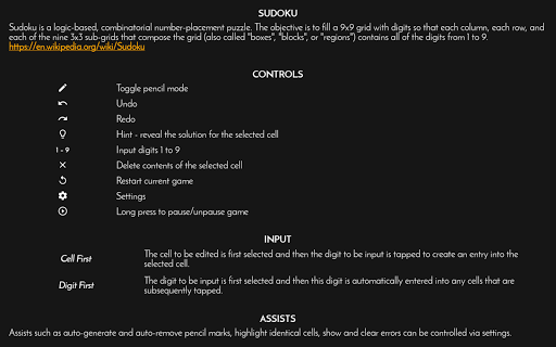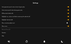 • Tonnes of other assists such highlight identical cells, show remaining digit count, differentiate locked cells to deal with some of the more challenging sudoku puzzles.