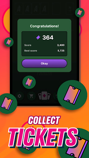 Complete as many Solitaire draws as you can. By the wise moves, collect as many points and tickets as you can. Players can get more points if they play cards one after another.