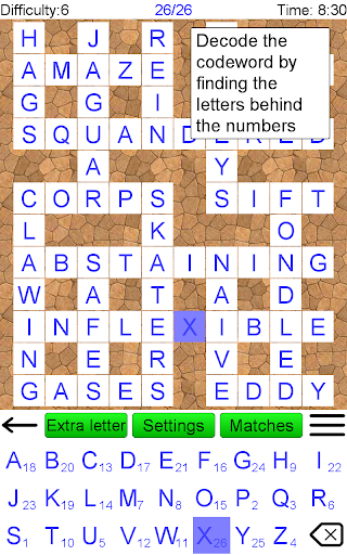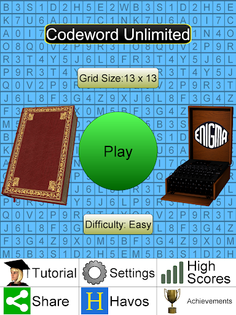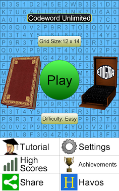Codeword Unlimited is an application to play the popular word game known as Codeword (also known as Cipher crosswords or Cyptograms).