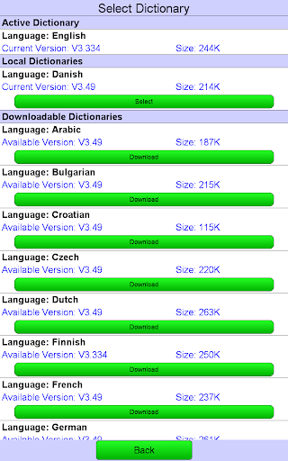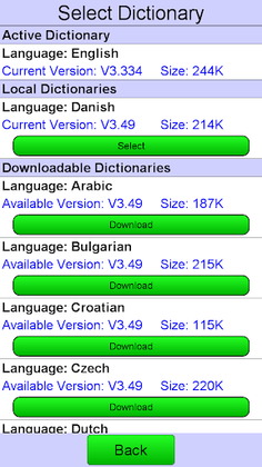 9) Choose the language of the word list, from a large range of downloadable dictionaries. 36 languages are currently available (see below)