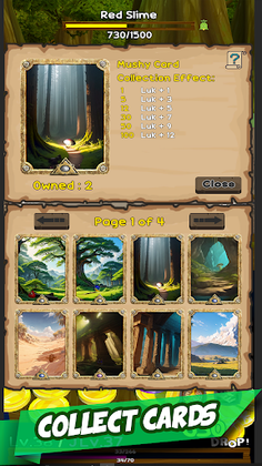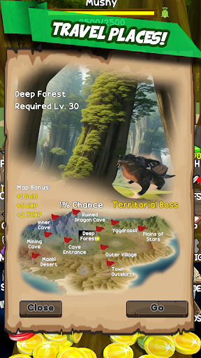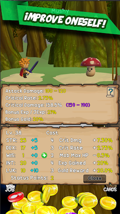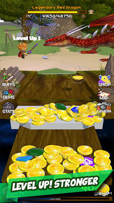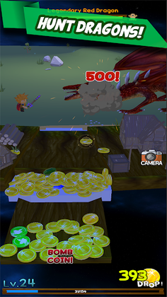 Coin Pusher with Role-Playing Game elementsPush Coins, Collect Prizes, Upgrade, Level-up, Allocate Stats,Learn Skills, Travel places, Buy, Equip and Upgrade Weapons,Open Treasure Chests, Fight Monsters and Dragons