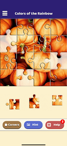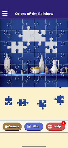 If you're stuck you can use "Hint" to have a glimpse of the picture or use "Help" to locate one piece.