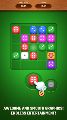 Merge dice of the same value to create higher-numbered dice. The more you merge, the bigger the rewards! Plan your moves strategically to maximize your score and uncover powerful special dice.