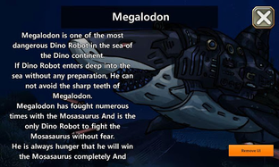 Unleash the ferocious power of Megalodon, the most perilous Dino Robot in the vast depths of the Dino continent's sea. Unprepared Dino Robots who dare to venture into these waters will quickly become nothing more than a treat for Megalodon's razor-sharp teeth. Among Dinosaurs, Megalodon stands alone as the fearless fighter who has taken on the Mosasaurus and emerged victorious time and time again. With an insatiable hunger for domination, this king of the sea yearns to conquer and reign supreme over all other beings.