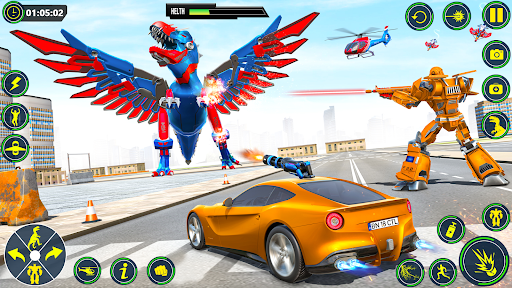 In Dino Transform Robot Car Game dinosaurs turn into robots and battle with enemy robots.