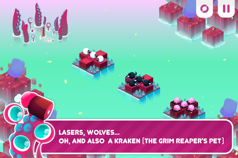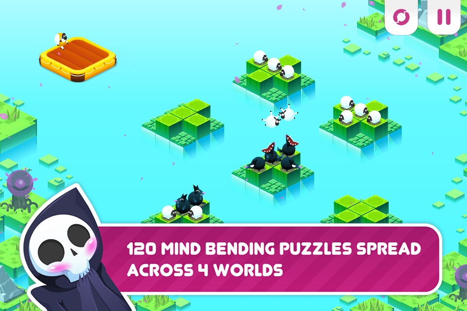 Looking for a puzzle game that's both smart and pretty? Look no further than Divide By Sheep! In this game, the Grim Reaper has a cunning plan to make some new friends - and it involves flooding the area and dragging the sheep under. Now, these fluffy creatures are stranded on small islands and need your help to reach safety.