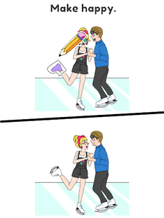 To pass this level, you have to discover why they are in trouble or in a bad mood. Think of something they will be happy with and write it in your own hands.