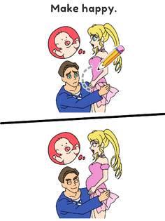 To pass this level, you have to discover why they are in trouble or in a bad mood. Think of something they will be happy with and write it in your own hands.